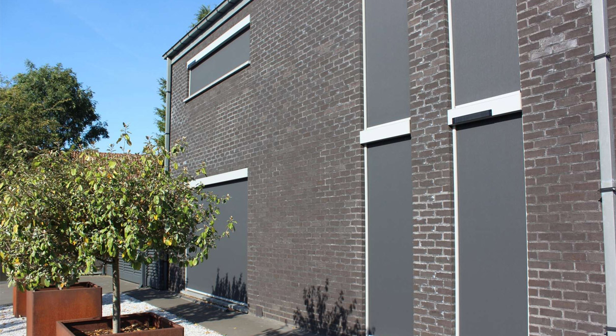 太陽能驅(qū)動底軌 隱藏式抗風(fēng)拉鏈卷簾 罩盒: 110×150mm 最大寬度: 4500mm 最大高度: 2700mm 最大面積:12㎡